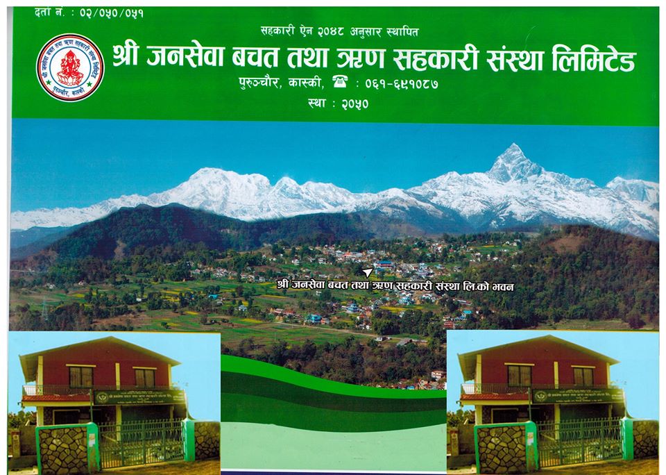 जनसेवा वचत तथा ऋण सहकारी संस्था लि., कास्की संस्थाको वर्तमान कार्यक्षेत्र ःपर्यटकीय सुन्दर नगरी पोखरा शहर देखी करिव ८ कि.मी उत्तर माछापुच्छ«े र अन्नपुर्ण हिमश्रृङखलाको काखमा आच्छादित जनसेवा वचत तथा ऋण सहकारी संस्था लि. साविक पुरुन्चौर गा.वि.स. वडा नं. ९ हाल पोखरा महानगरपालीका १९ मा पर्दछ ।