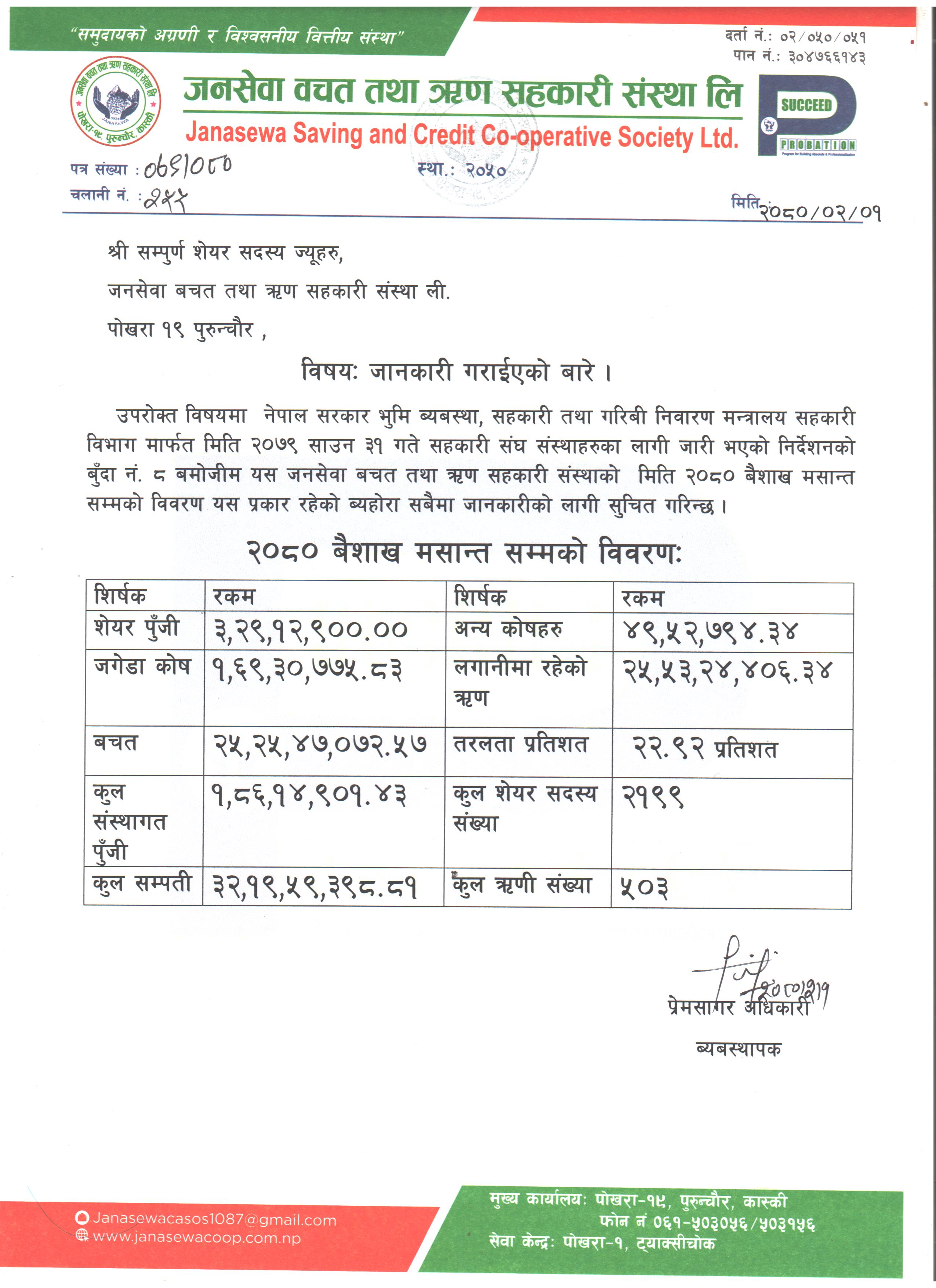 २०८० बैशाख महिनाको बित्तिय बिबरण