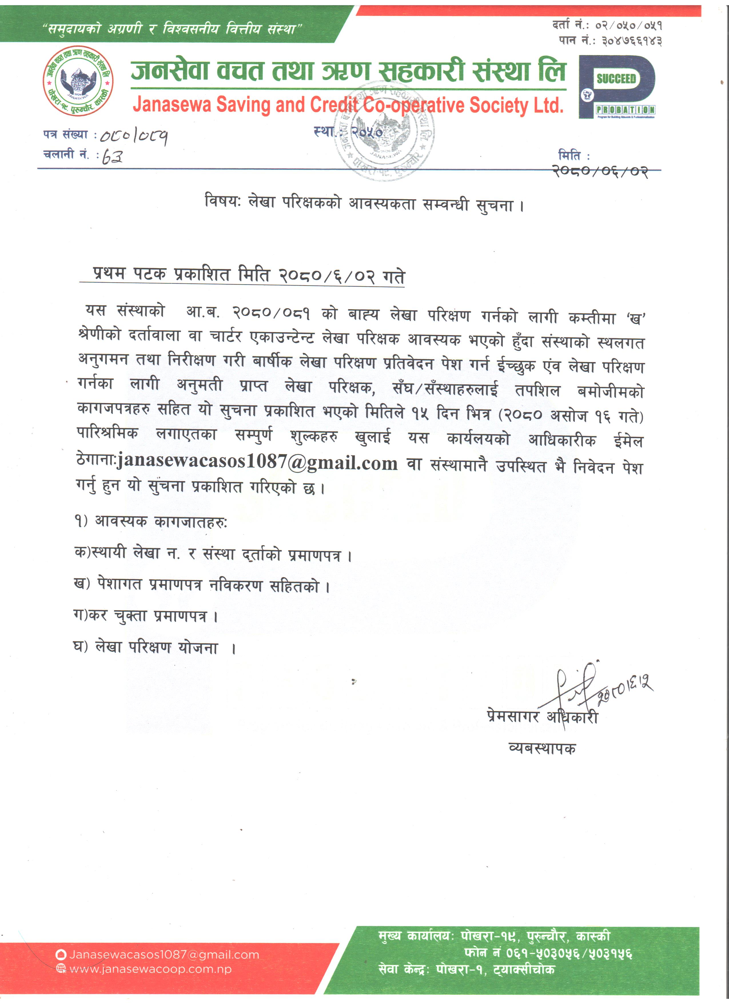 लेखा परिक्षकको आवश्यकता सम्बन्धी सुचना