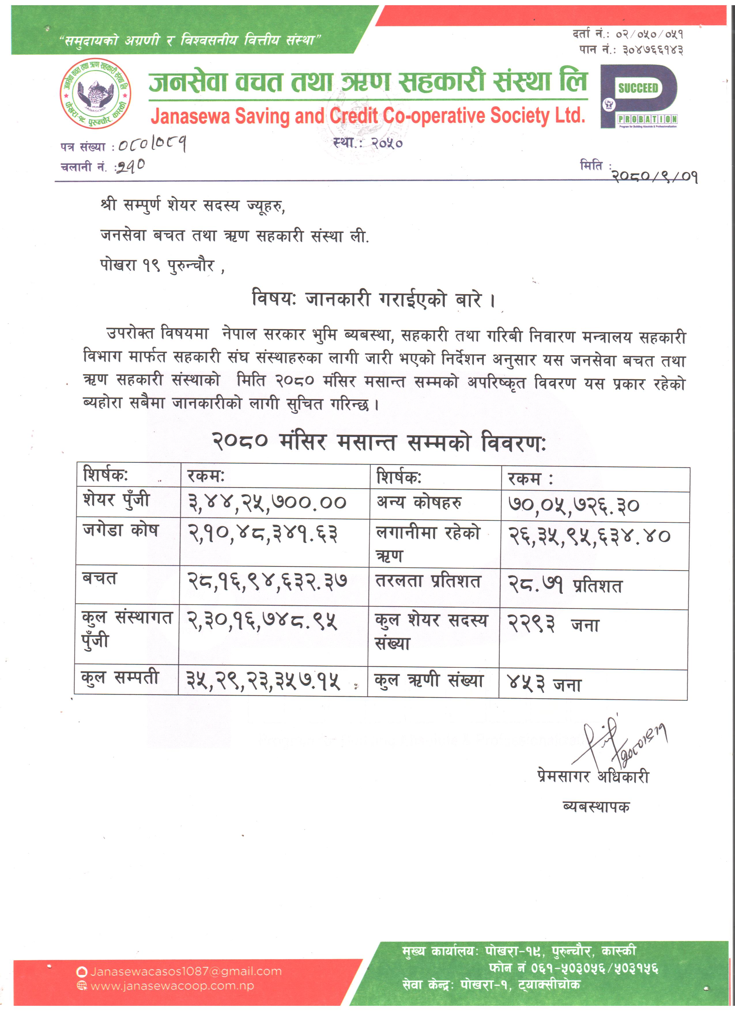 २०८० मंसिर महिनाको बित्तिय बिबरण